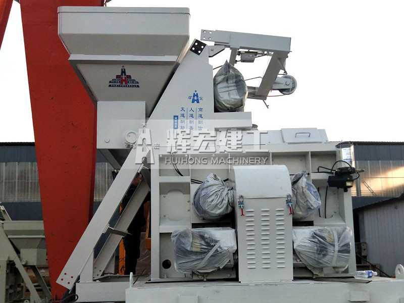 JS3000攪拌機的上料系統由卷揚機構、上料架、料斗、進料嘴等部分組成。