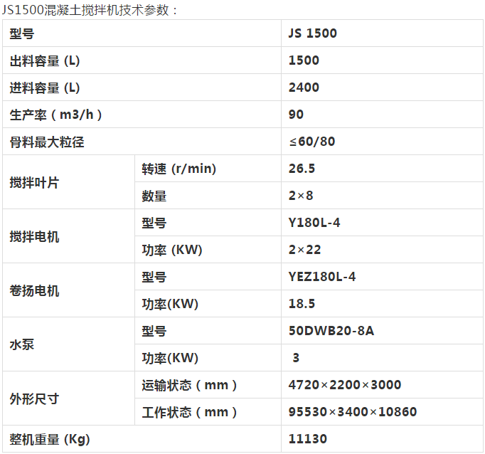 JS1500混凝土攪拌機(jī)是目前國內(nèi)外先進(jìn)、理想的機(jī)型,具有自動化程度高、攪拌質(zhì)量好、效率高、能耗低、噪音小、操作方便、卸料速度快、襯板及葉片使用壽命長,維修保養(yǎng)方便等優(yōu)點(diǎn)。適用于塑性、干硬性、輕骨料混凝土及各種灰漿、砂漿的攪拌。本機(jī)采用機(jī)動出料,能與翻斗車配套使用,是各種建筑工地的理想機(jī)具。